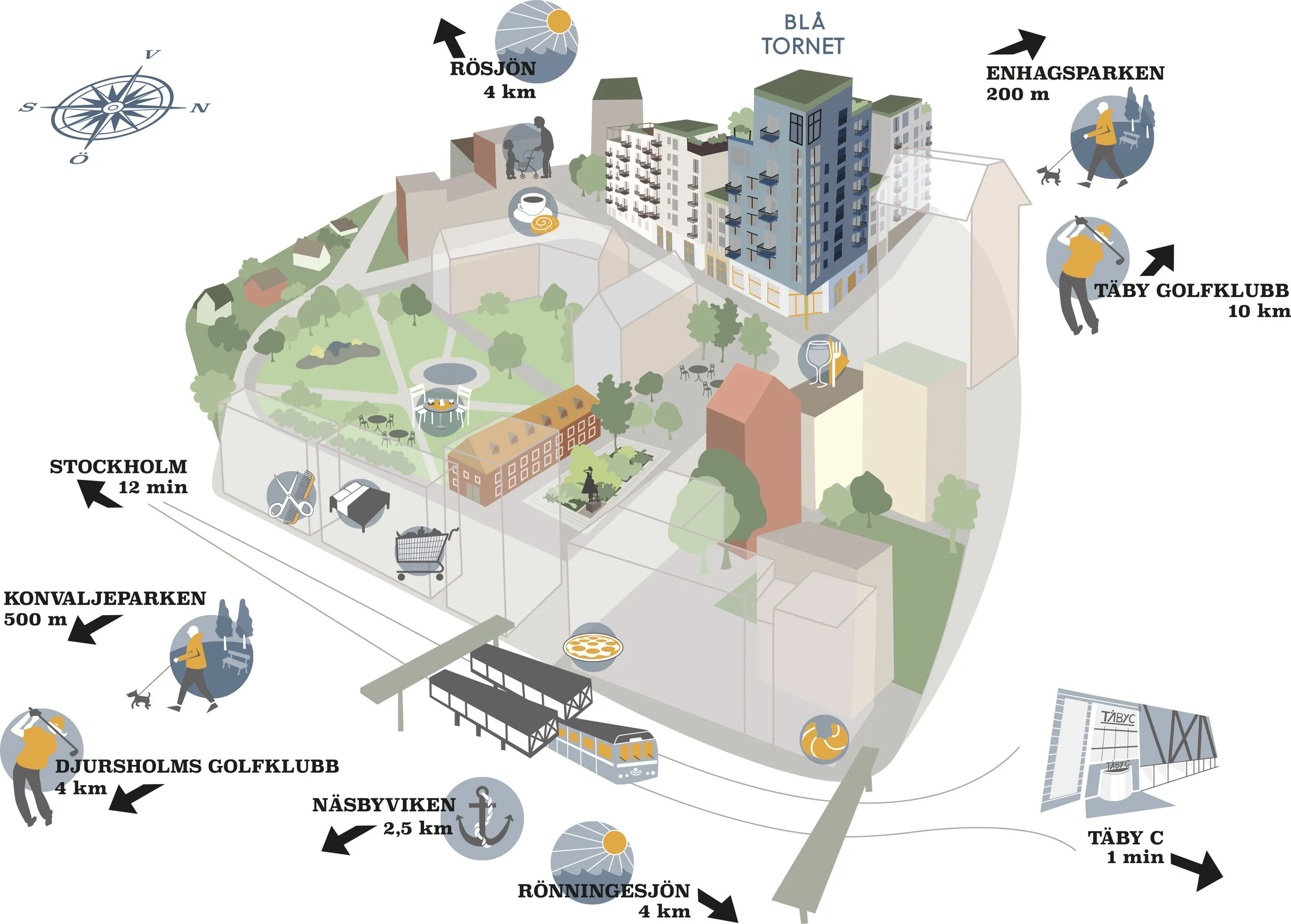 Västra Roslags-Näsby är ett av Täbys absolut bästa lägen. Här växer en ny stadsdel fram. Blandningen av gammal och ny bebyggelse skapar ett levande och hemtrevligt område. Kvarterskrog, caféer, bageri och yogastudio kombinerat med en vacker park, ett levande torg och livsmedelsbutik gör att man sällan vill, eller behöver lämna sin stadsdel.